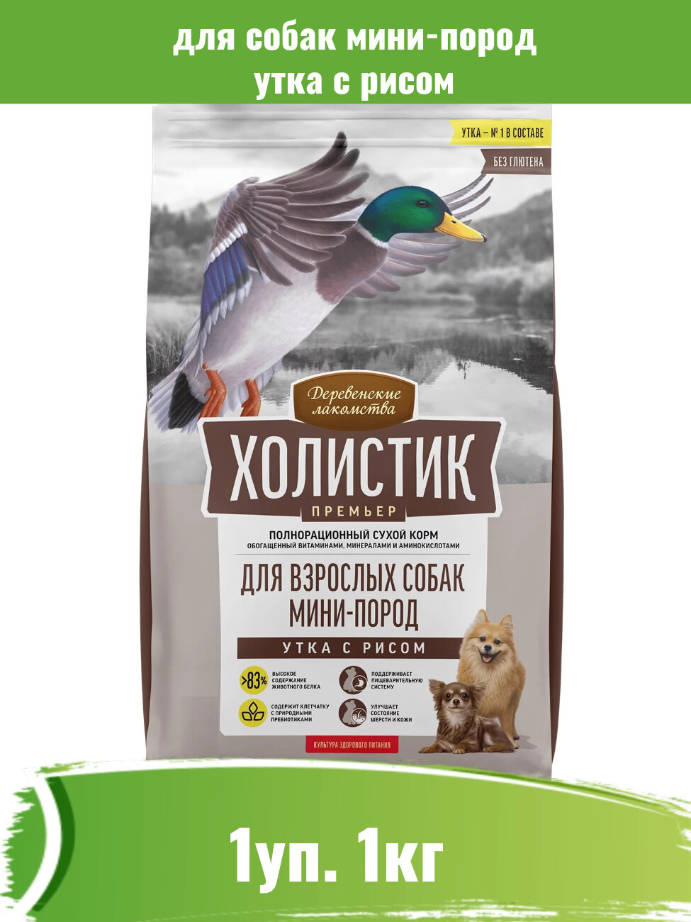 Купить Деревенские лакомства Холистик Премьер сухой для собак мини-пород Утка с рисом 1кг