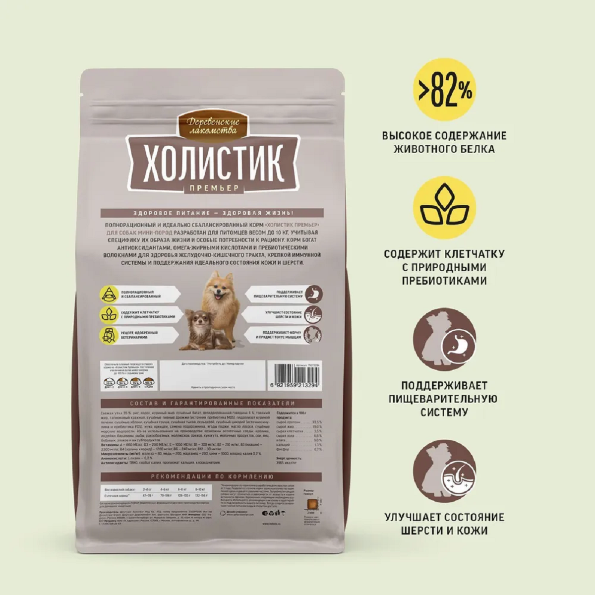 Деревенские лакомства "Холистик" сухой корм для собак мини пород (утка с рисом) 3 кг