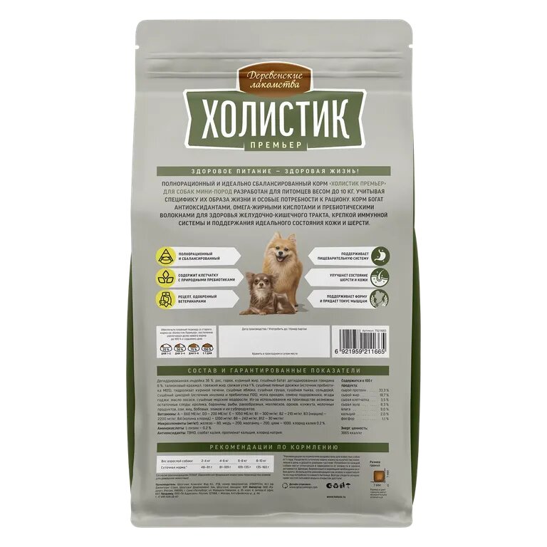 Деревенские лакомства 79213263 Холистик Премьер сух.длЯ собак мини-пород Индейка с рисом 3кг, 95990 (2 шт)