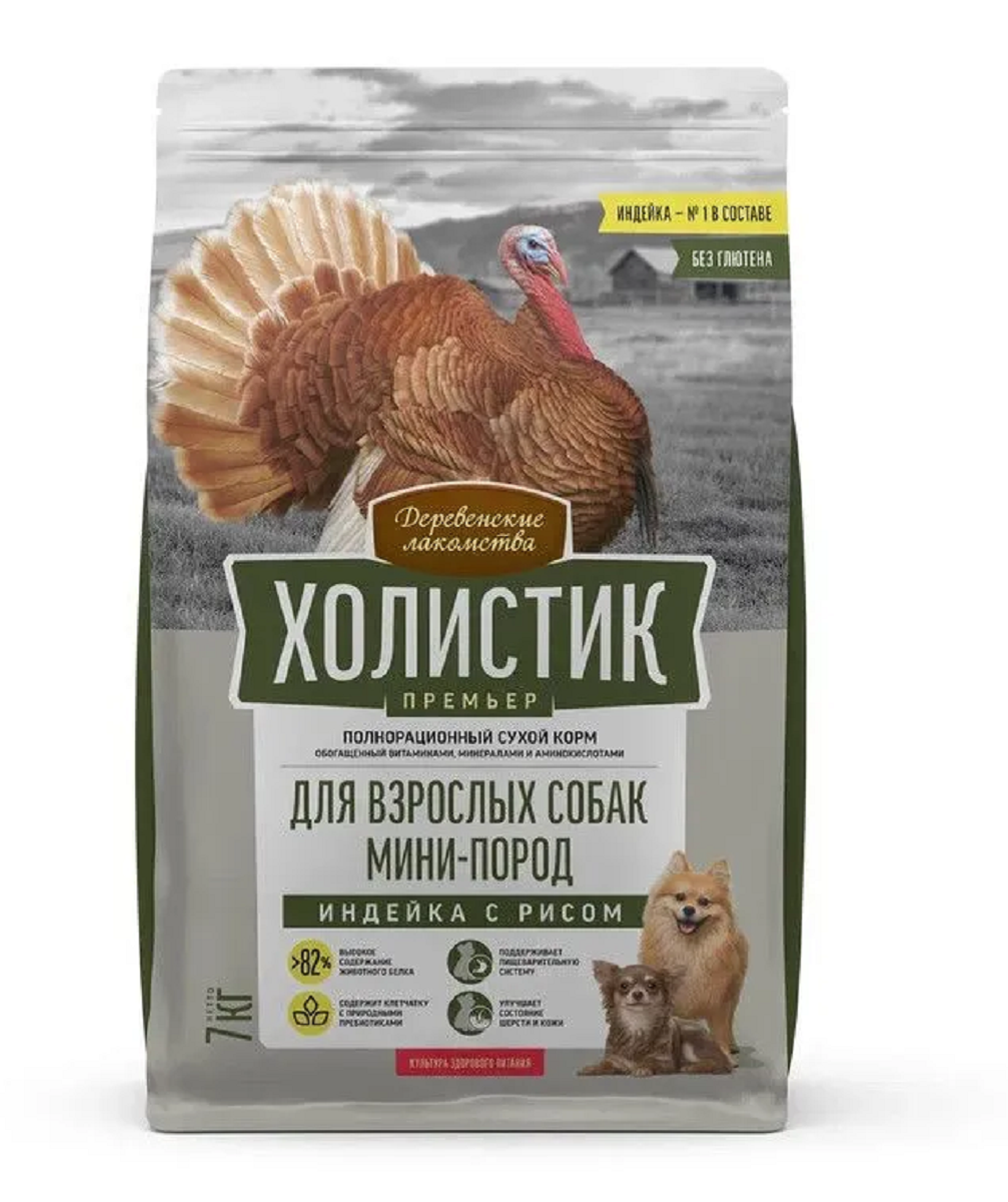 Купить Сухой корм "Деревенские лакомства Холистик Премьер" для собак мини-пород, индейка с рисом, 7 кг
