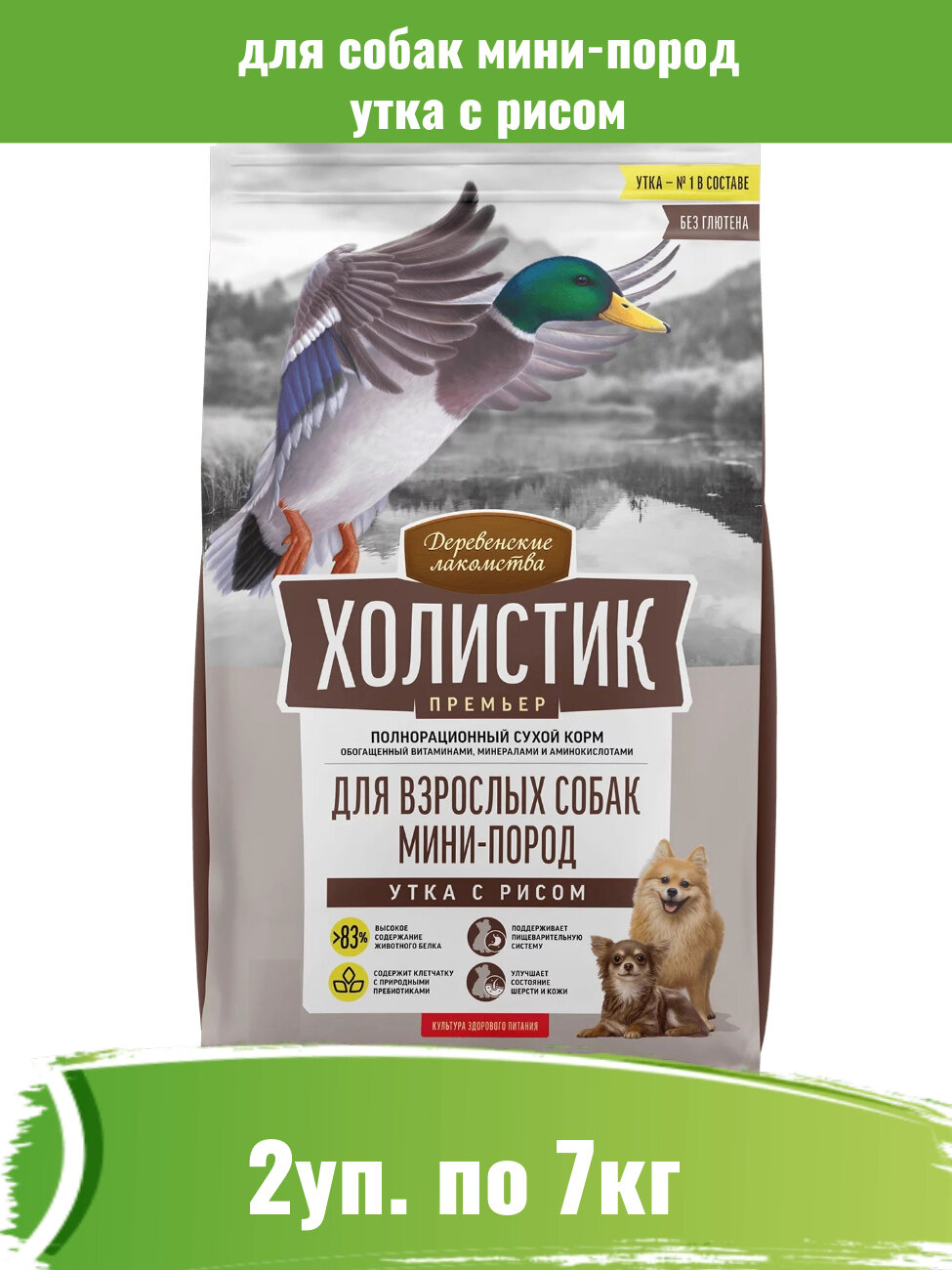 Деревенские лакомства Холистик Премьер корм сухой для собак мини-пород Утка с рисом 7кг