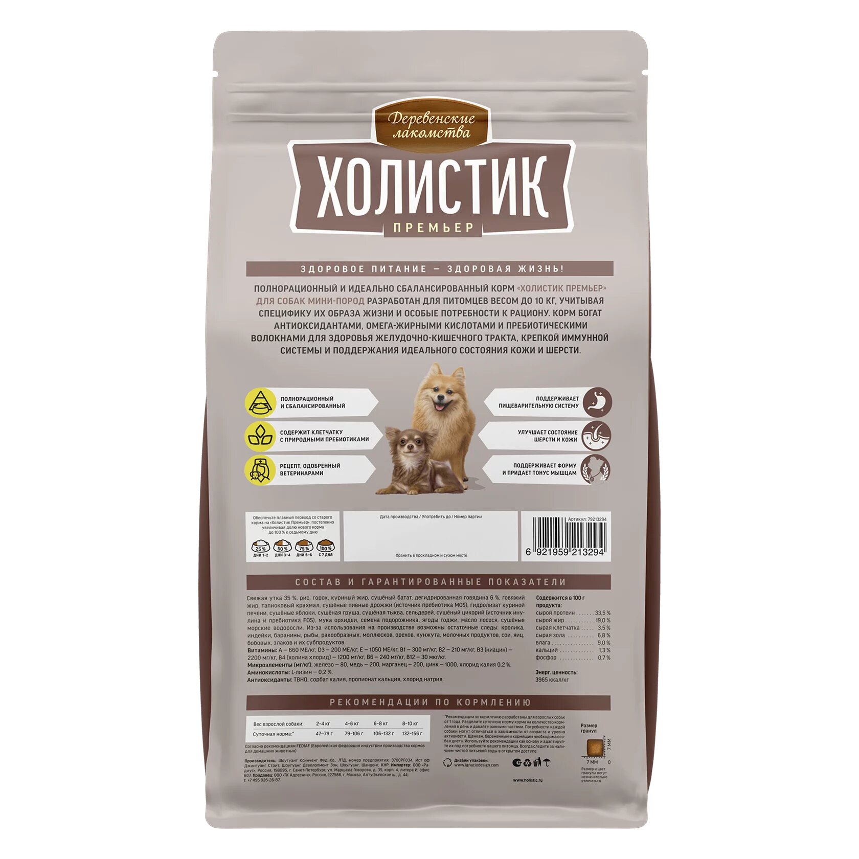 Сухой корм для собак Деревенские лакомства Холистик Премьер для мини-пород ягненок с рисом 1кг