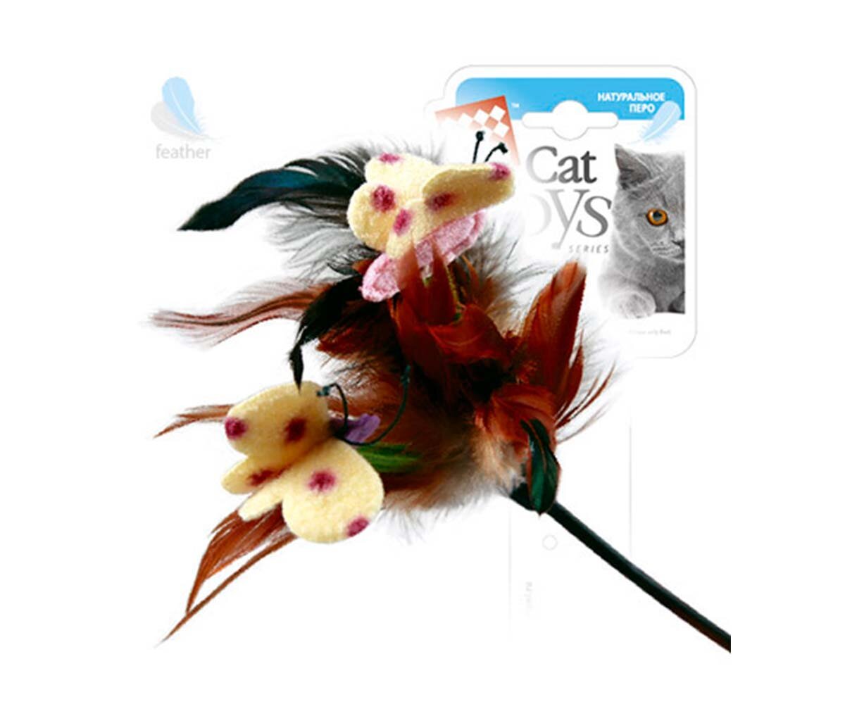 Игрушка для кошек Gigwi Cat Toys на стеке с бабочками и перьями 43 см.