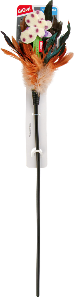 GIGWI Игрушка для кошек Дразнилка с перьями и бабочками на стеке 43+12 см