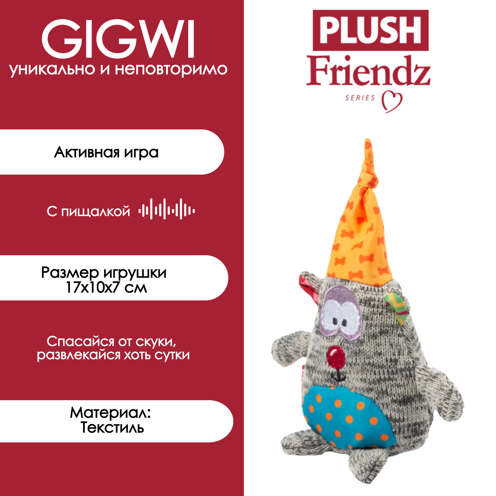 Игрушка GIGWI Plush Friendz Мишка с пищалкой, разноцветный для собак (15 см)