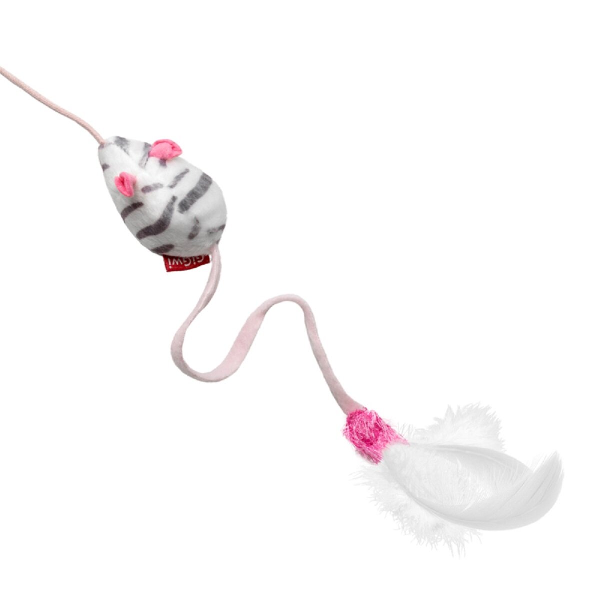Игрушка для кошек GIGWI Cat Toys Дразнилка мышка со звуковым чипом и перьями (51 см)