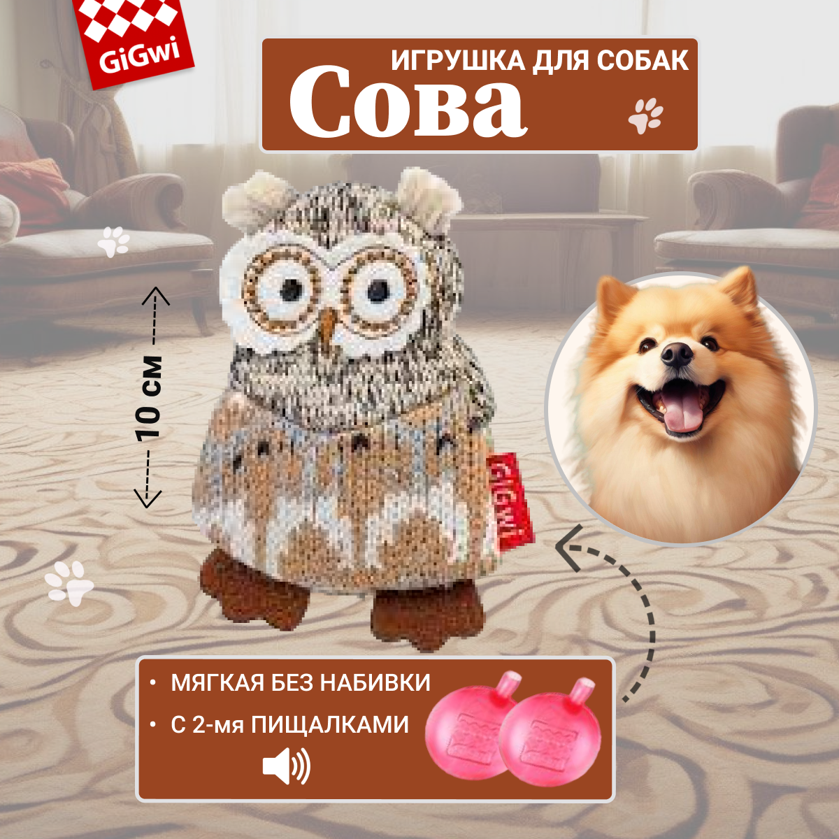GiGwi Сова с 2-мя пищалками игрушка для собак 10 см