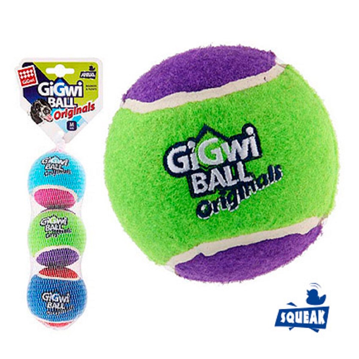 GiGwi 75338 Три мяча с пищалкой 6,3см- игрушка для собак (теннисная резина), серия GiGwi BALL Originals 1/48