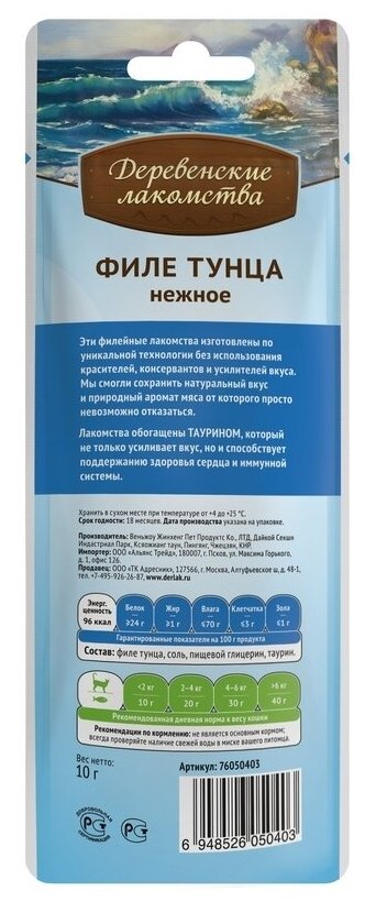 Деревенские лакомства 76050403 для кошек Филе тунца нежное 10г(10 штук)
