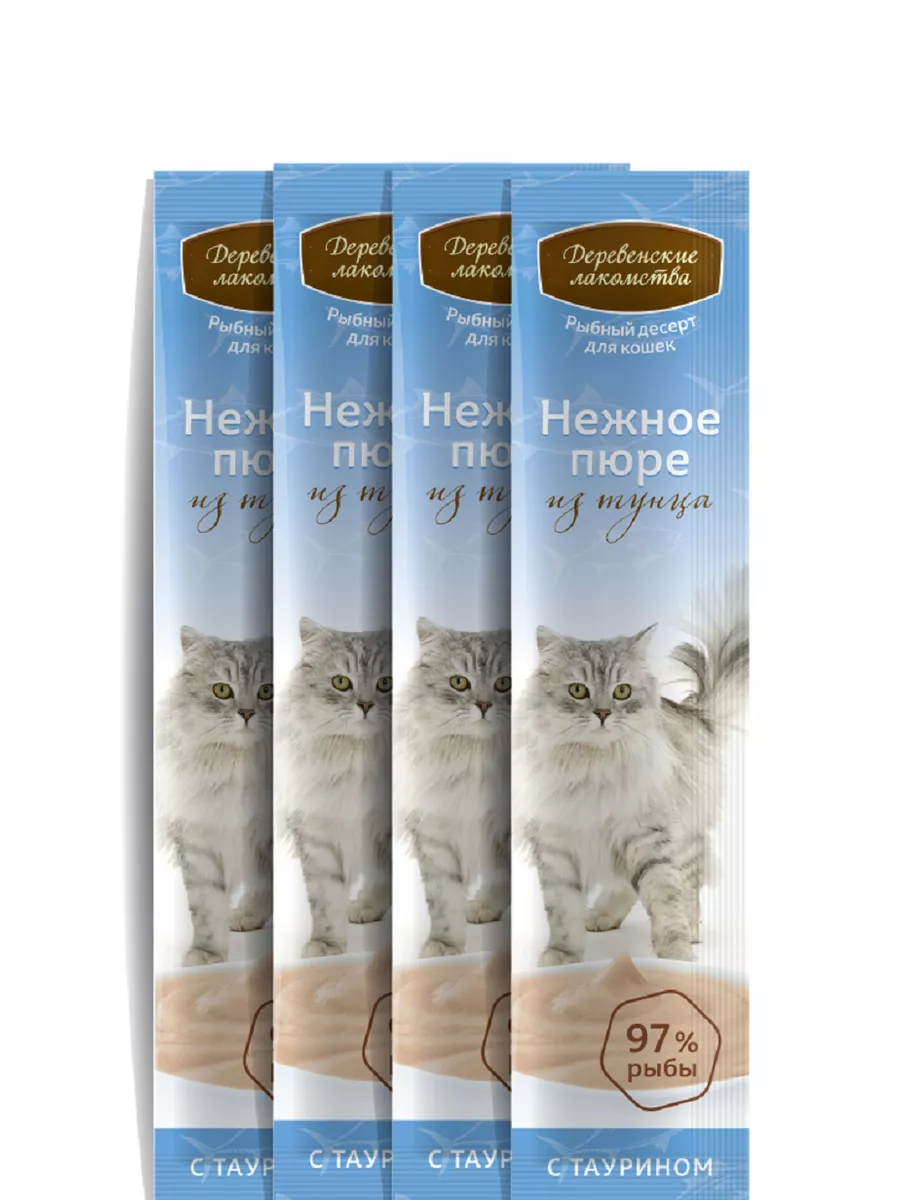 Деревенские лакомства "Нежное пюре из тунца" для кошек упаковка, 4 пакета по 10 гр