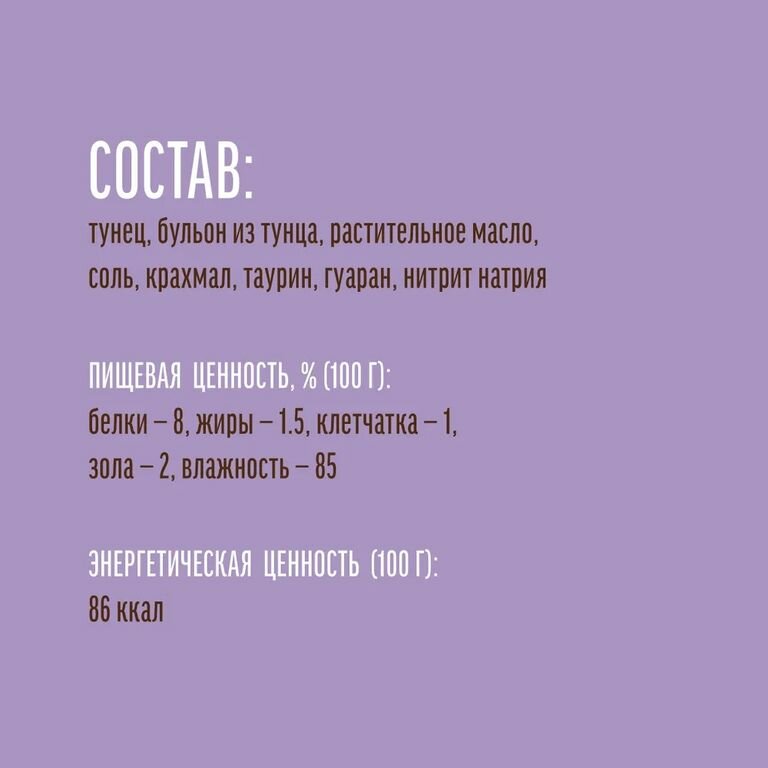 | Отзыв: | лакомство супер, мой кот обожает тунец, даю один раз в день по пакетику, кот сметает за секунду |