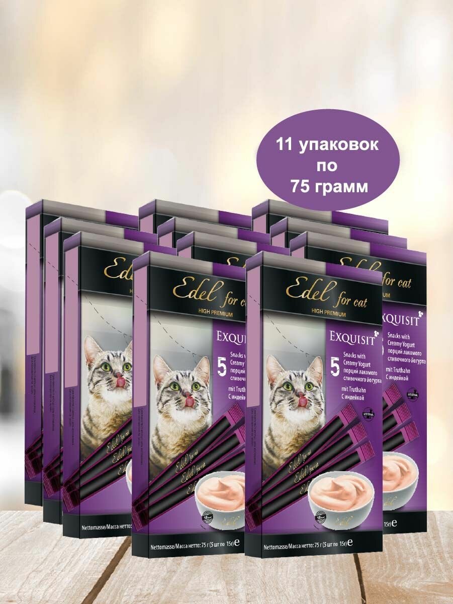 Лакомство Edel для любых кошек. Крем-суп, сливочный йогурт с индейкой. (11шт x 75гр)