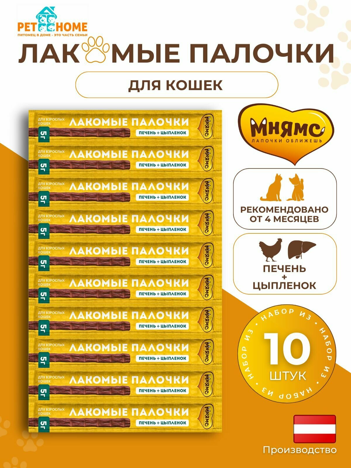 Купить Лакомство для кошек Мнямс лакомые палочки печень и цыпленок 10 шт