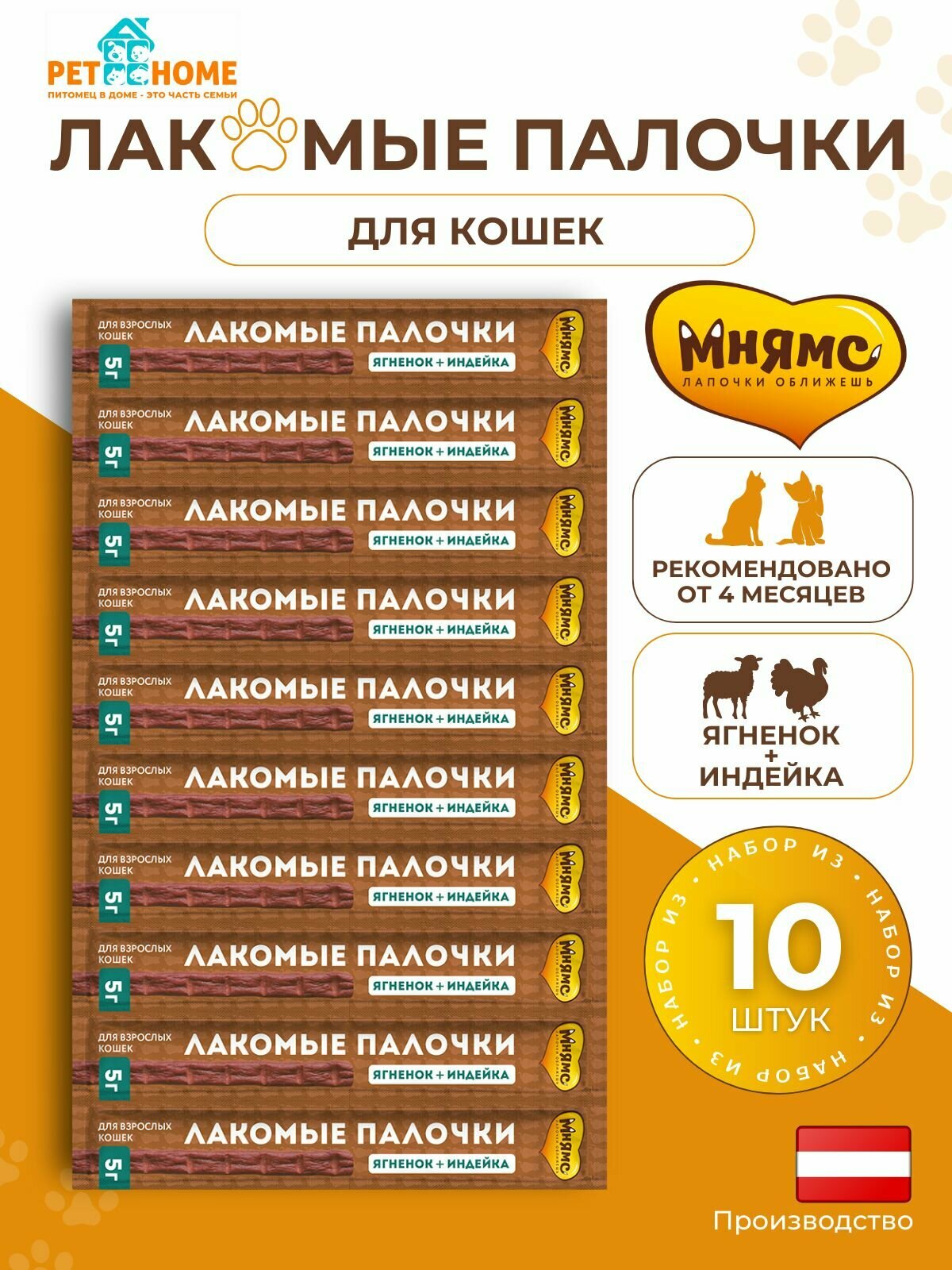 СохранитьМнямс лакомые палочки 13,5 см для кошек ягненок и индейкой 10х5 г, 1 уп интересное: