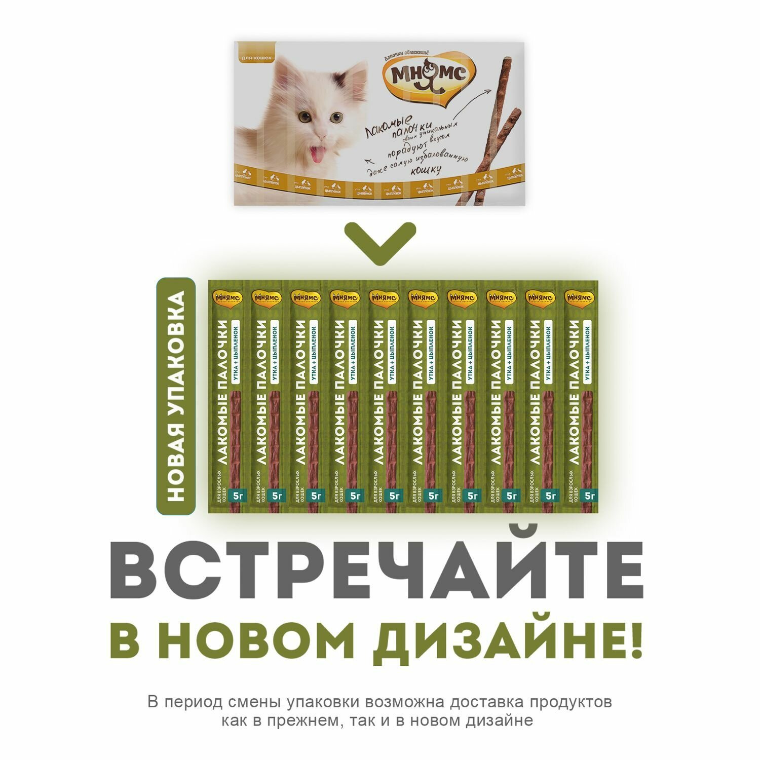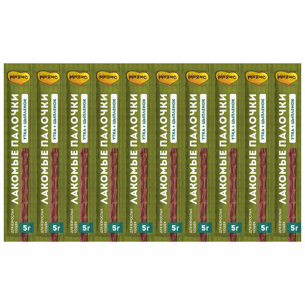 Купить Мнямс Лакомые палочки 13,5 см 10 шт по 5 г, для кошек из цыпленка и утки (175079)