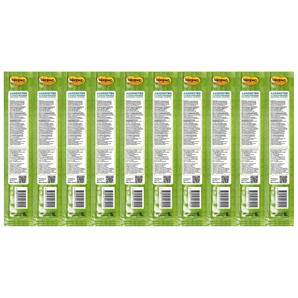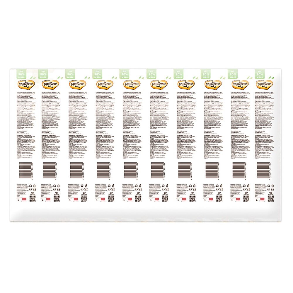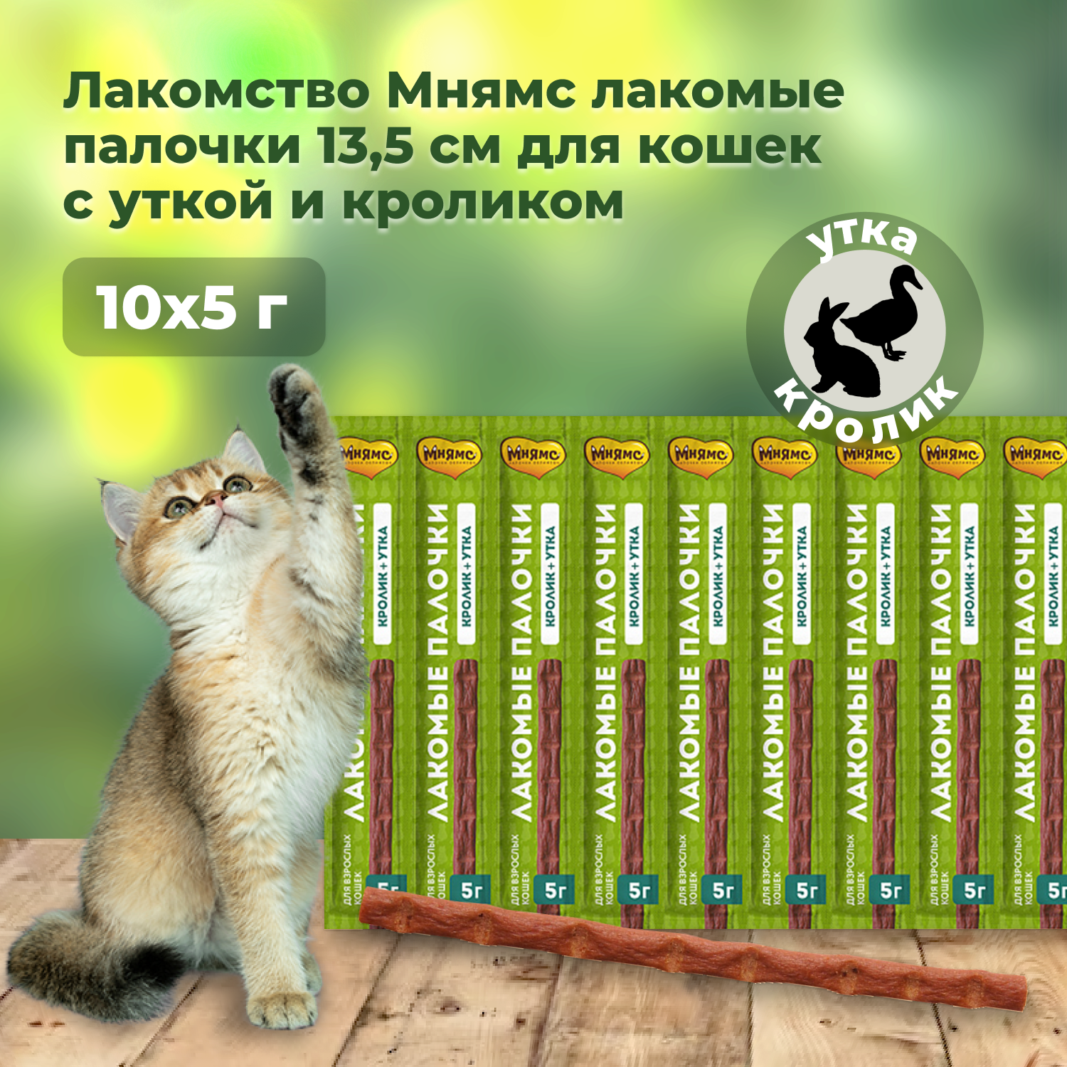 Мнямс лакомые палочки для кошек с уткой и кроликом, 13,5 см - 5 г х 10 шт