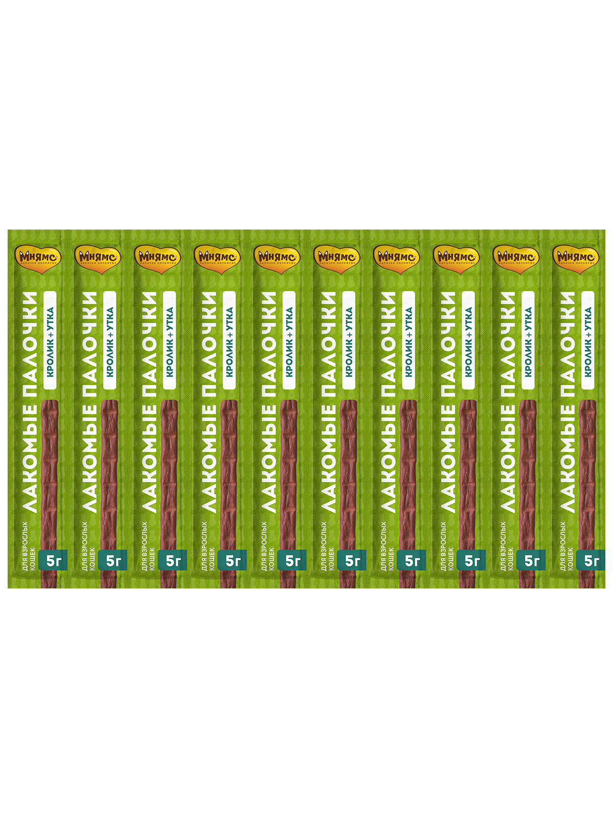 Лакомство для кошек Мнямс Лакомые палочки Утка, кролик, 5г х 10шт. в уп. 50 г