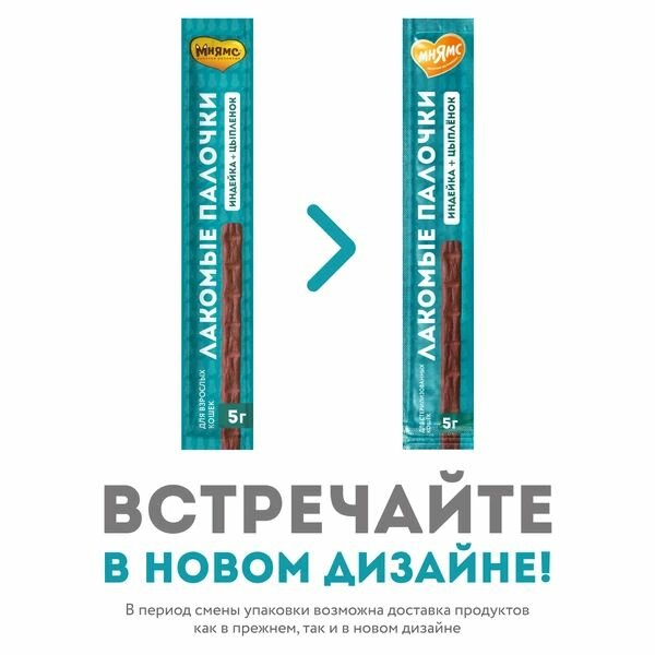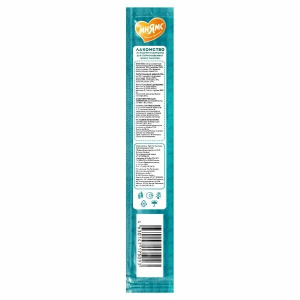 Мнямс лакомые палочки 13,5 см для стерилизованных кошек из индейки и цыпленка 3х5 г NEW