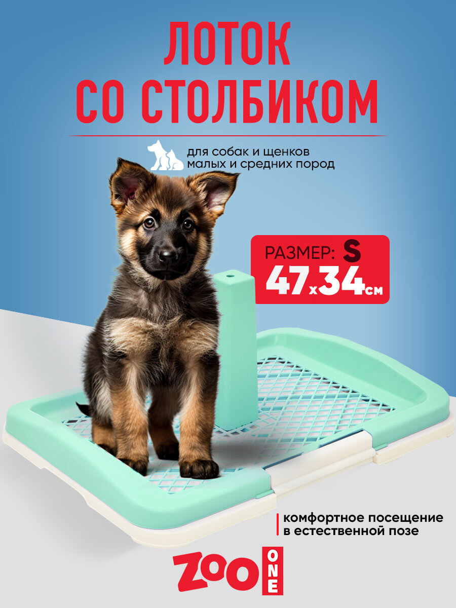 Туалет лоток для собак ZooOne со столбиком 47*34*6(20) см малый, зелёный, P159-01
