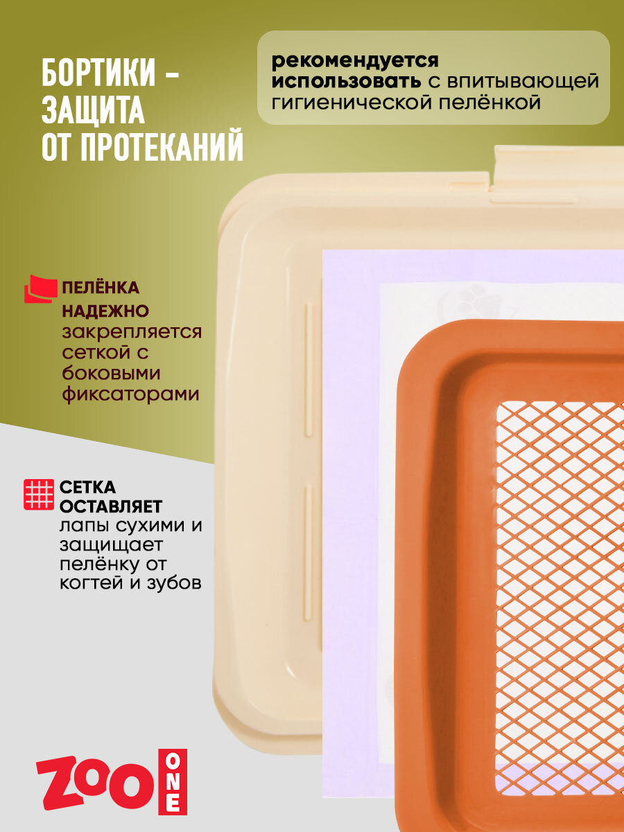 Туалет лоток для собак ZooOne со столбиком 63*49*6(20) см, коричневый
