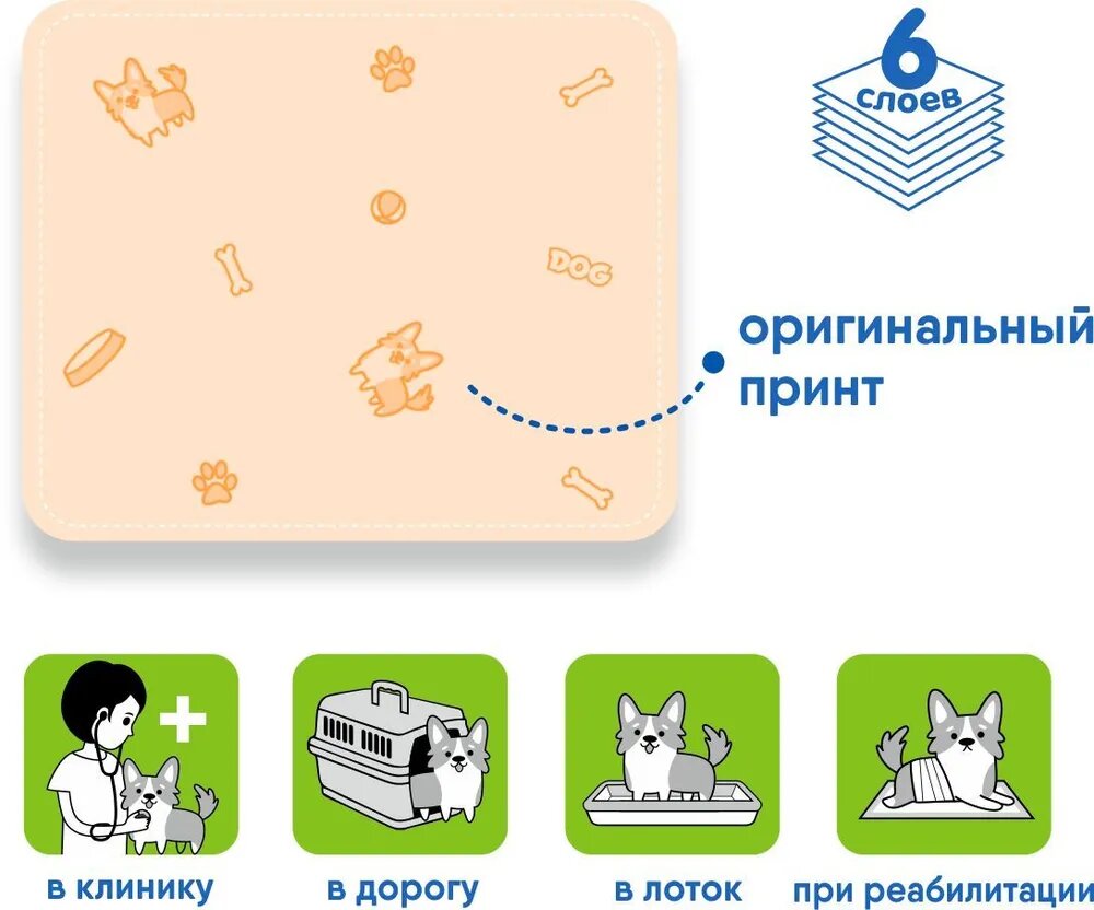 Пеленка для собак, 60х45 см, 1 шт, гигиеническая с липучками, гель+уголь, NekiZoo, размер S, PP2016