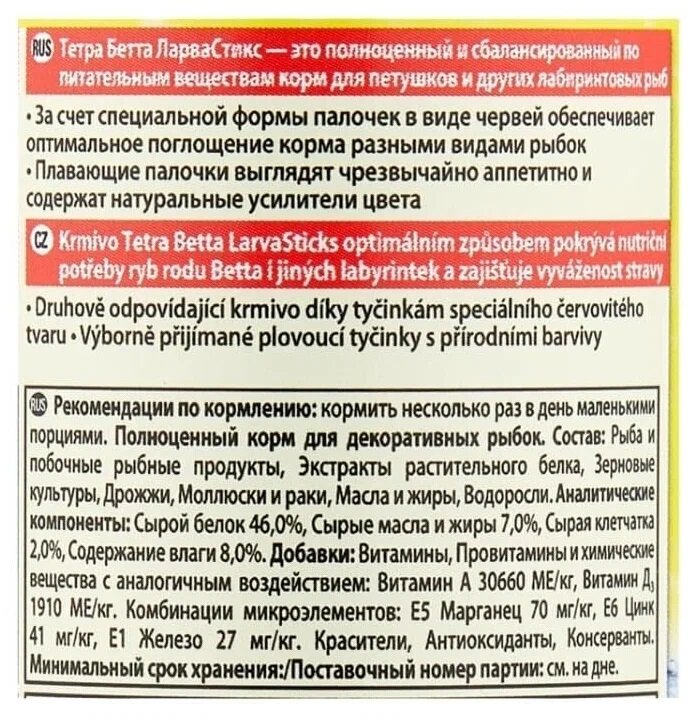 Ниже Вы можете прочитать отзывы на TetraBetta LarvaSticks 5г пакет плавающие палочки, ознакомится с подробными характеристиками, посмотреть интересные обзоры и фотографии на TetraBetta LarvaSticks 5г пакет плавающие палочки.