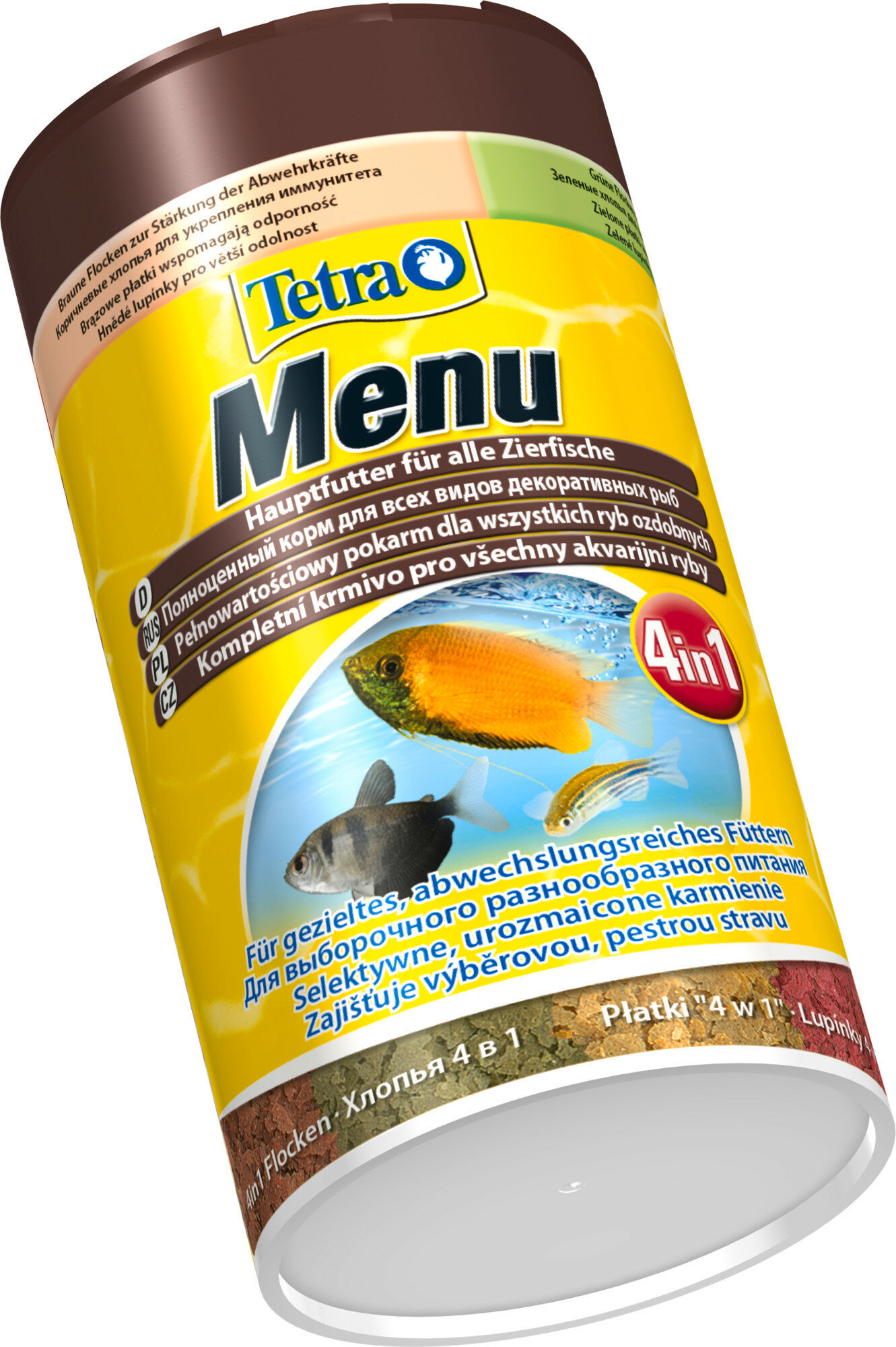 Tetra Menu, 4 в 1, 4 различных вида хлопьевидного корма для декоративных рыб, в отдельных ячейках, 100 мл, 25 г