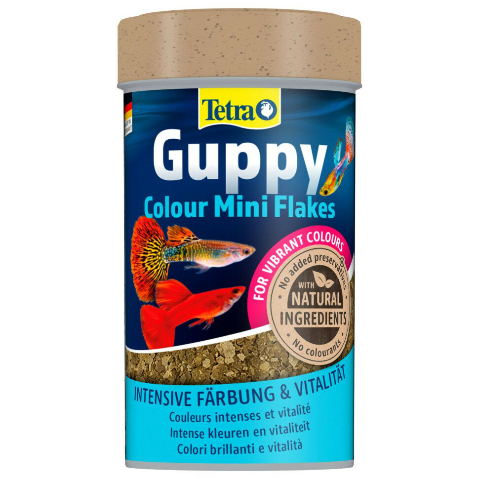 Tetra (корма) Корм для гуппи для усиления окраса, мини-хлопья Tetra Guppy Colour Mini Flakes 197190 | Guppy Colour Mini Flakes, 0,075 кг, 44853