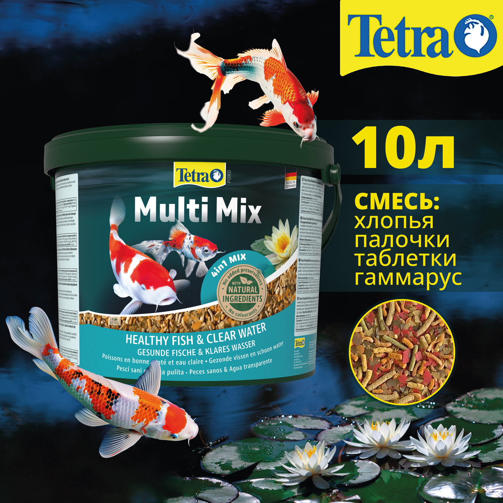 Корм для прудовых рыб Tetra Pond MultiMix гранулы, хлопья, таблетки, гаммарус 10 л
