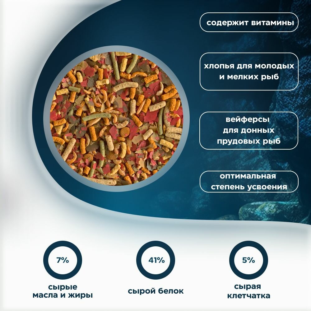 Tetra Корм Tetra Pond MultiMix для прудовых рыб, гранулы, хлопья, таблетки, гаммарус, 1 л