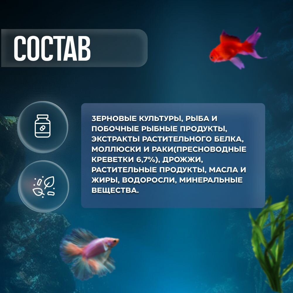| Плюсы: | Хороший разнообразный корм. Последний год всех своих рыб кормлю только им. |
