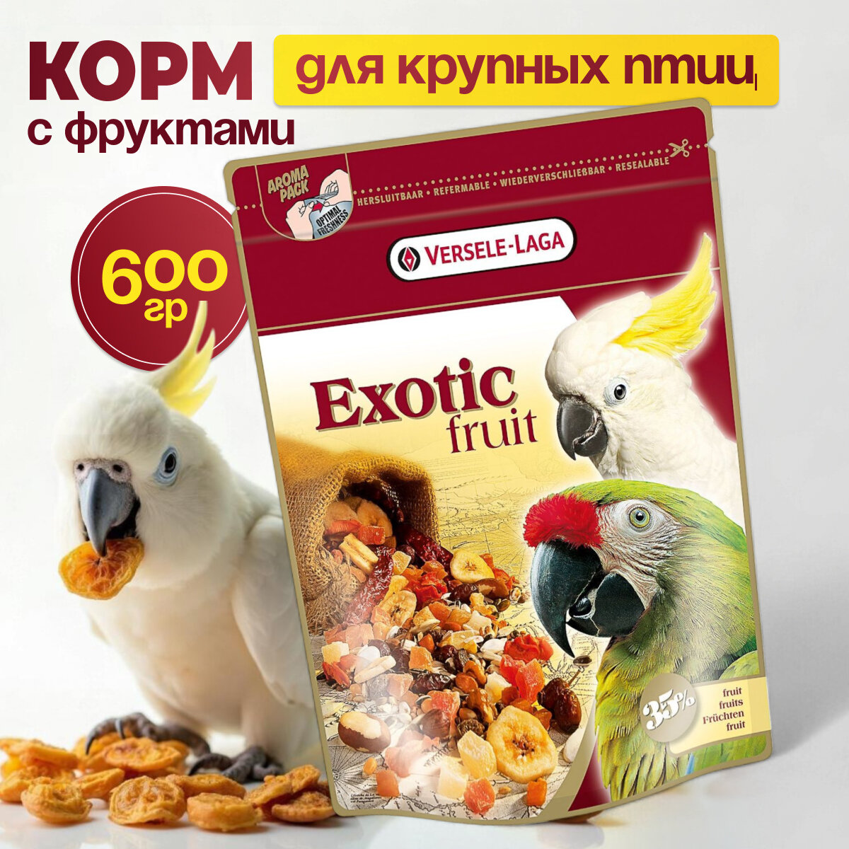 Лакомство VERSELE-LAGA Exotic Fruit для крупных попугаев с фруктами 600г интересное: