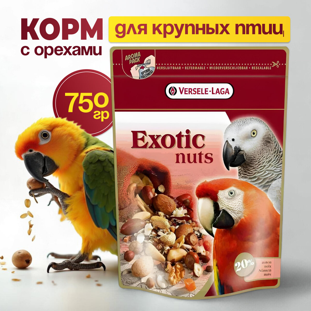 Лакомство VERSELE-LAGA Exotic Nuts для крупных попугаев с орехами 750г интересное: