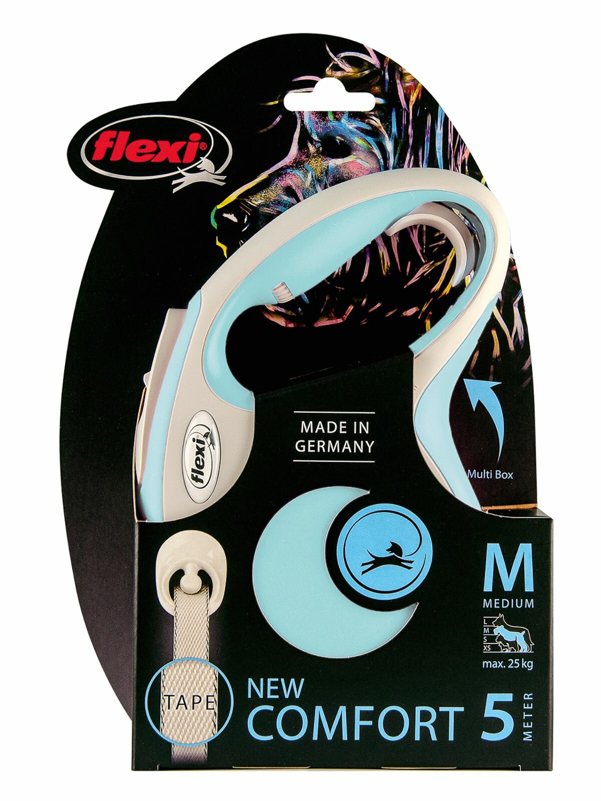 FLEXI NEW COMFORT TAPE ременной поводок рулетка для животных 5 м размер M голубой (1 шт)