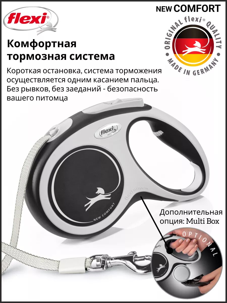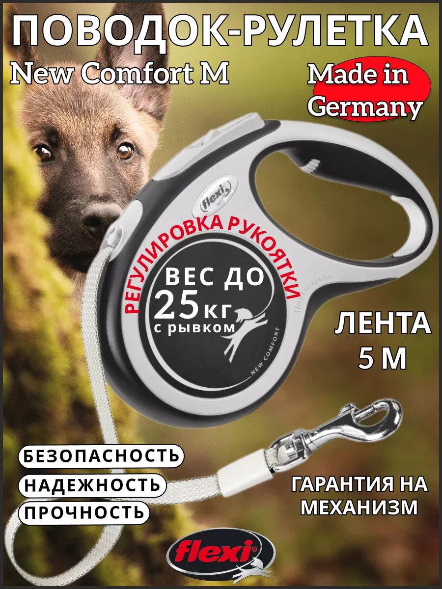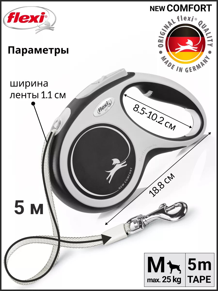 Ниже Вы можете прочитать отзывы на Flexi Рулетка New Comfort M 5м до 25кг (ремень) черная, ознакомится с подробными характеристиками, посмотреть интересные обзоры и фотографии на Flexi Рулетка New Comfort M 5м до 25кг (ремень) черная.