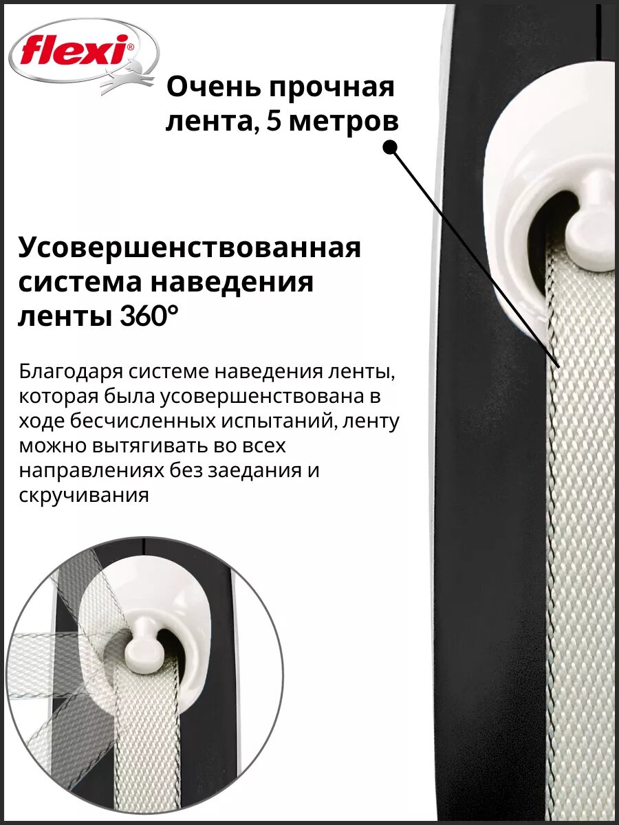Поводок-рулетка Flexi New Coмfort tape M, 5 м, 25 кг, черно-серая