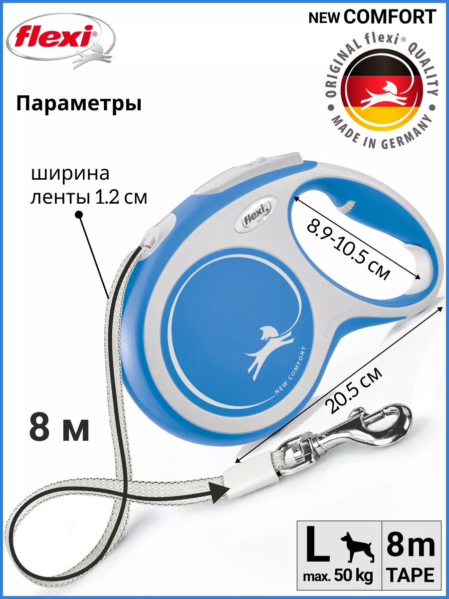 Купить Flexi New Comfort L Tape 8м до 50кг поводок-рулетка ремень, голубой