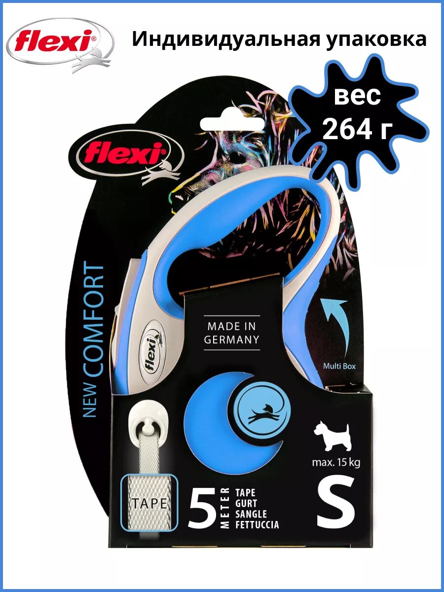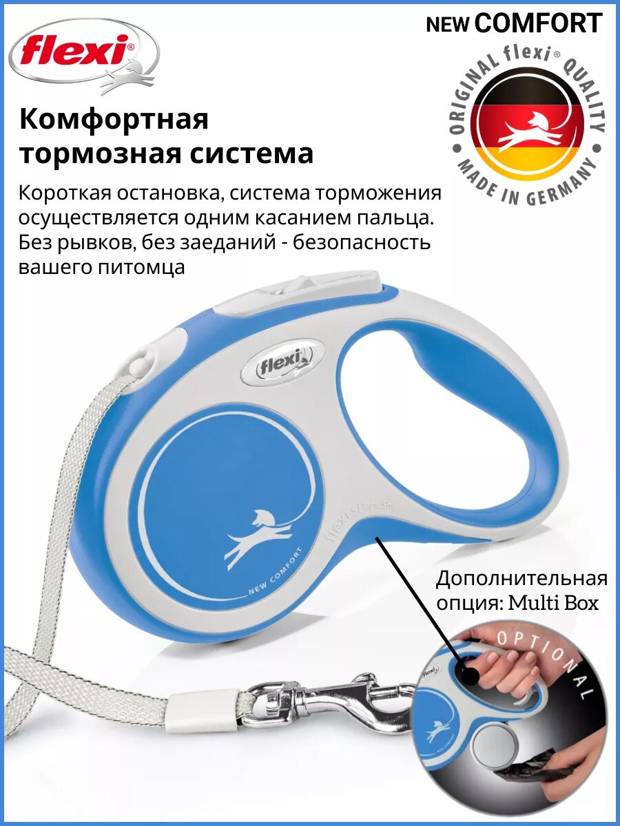 Поводок-рулетка Flexi New Coмfort tape S, 5 м, 15 кг, синий