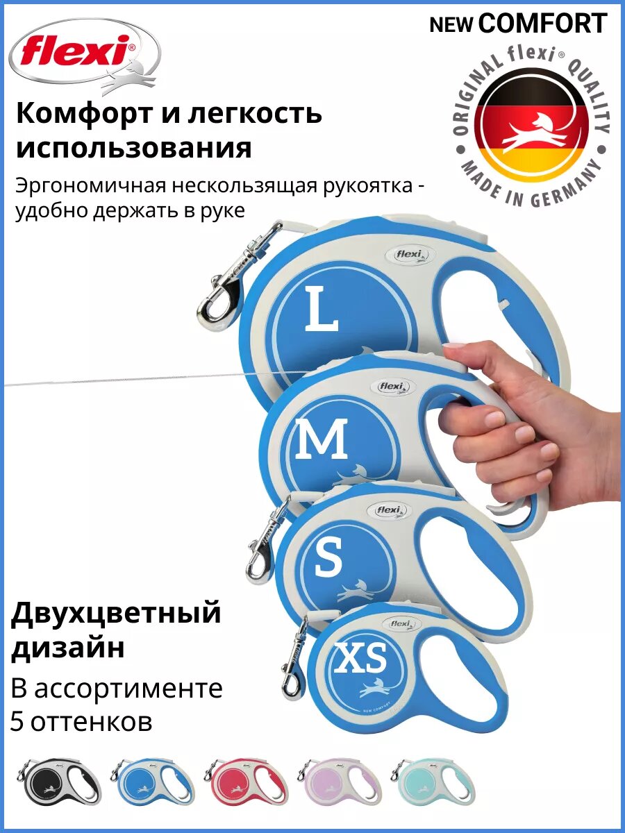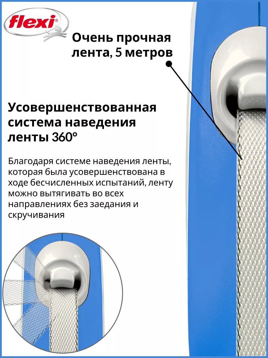СохранитьПоводок-рулетка для собак Flexi New Comfort S, лента 5 метров, цвет - синий/серый интересное: