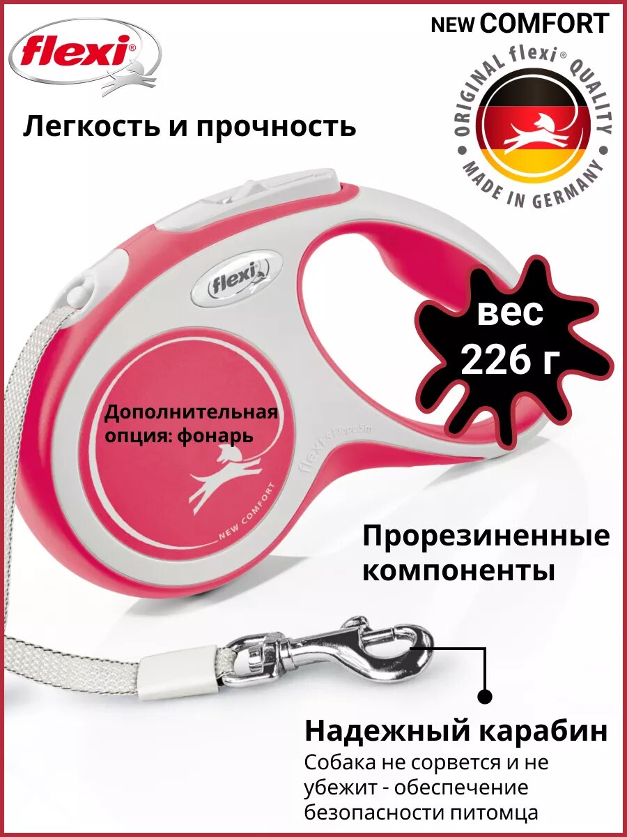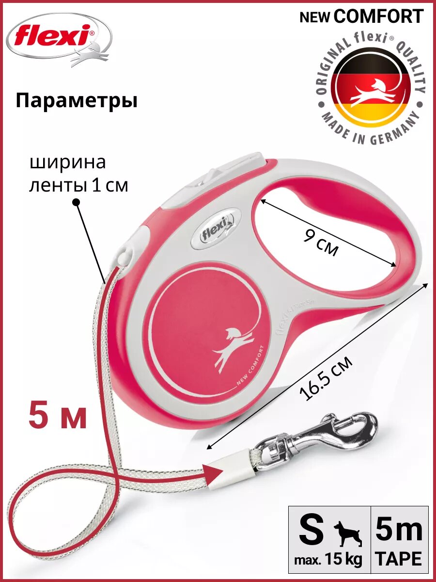 Сохранитьflexi Рулетка-ремень для собак до 15кг, 5м, красная (New Comfort S Tape 5m red) CF10T5.251.R.20, 0,221 кг интересное: