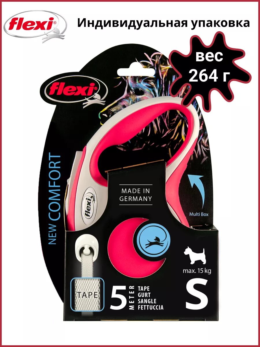 Поводок-рулетка Flexi New Comfort tape S 5m 15kg red