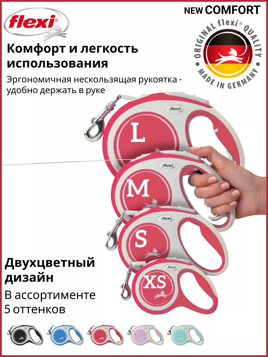 Flexi New Comfort Рулетка для собак весом до 15кг длинна 5м с ремнём