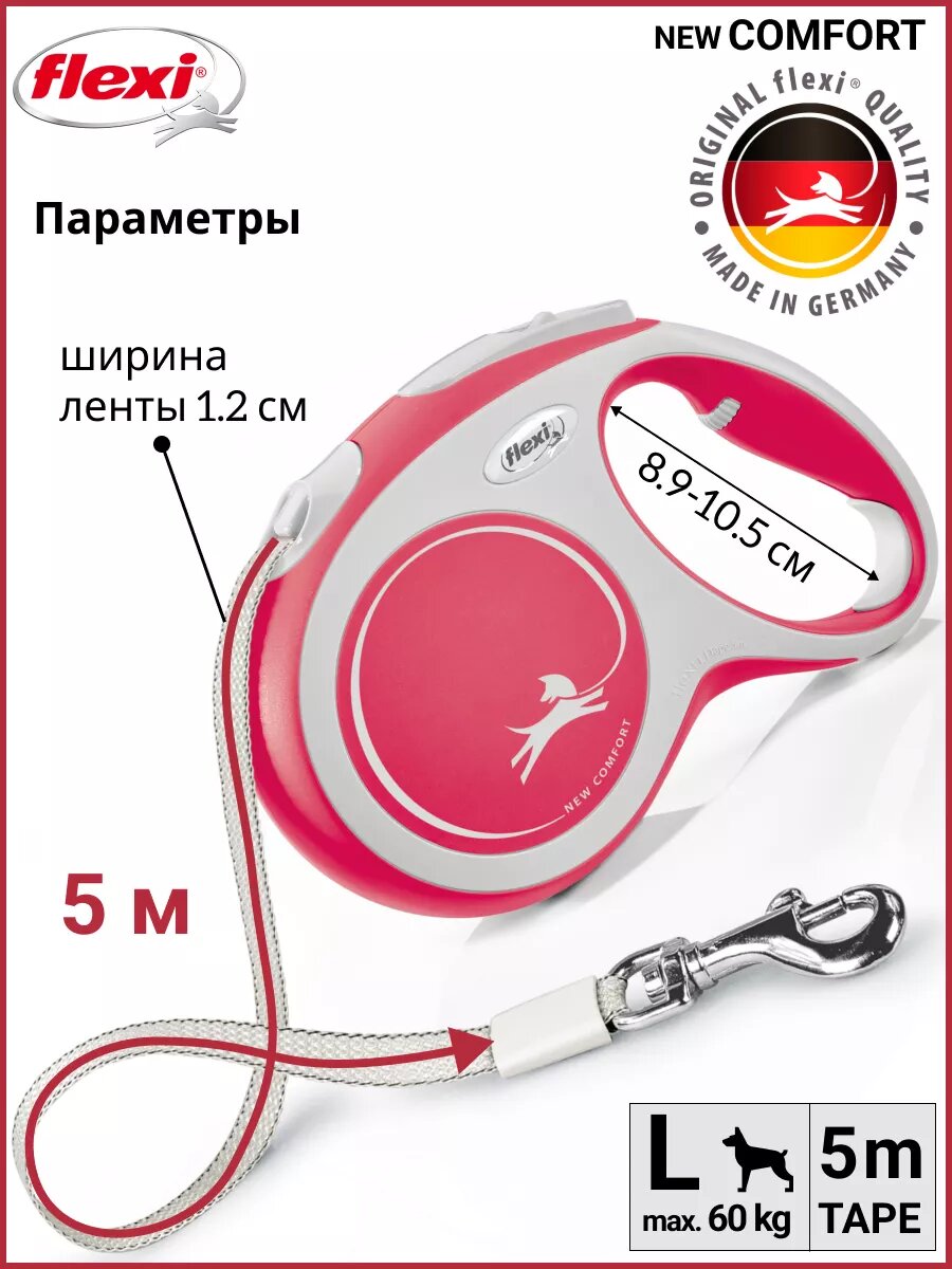 Поводок-рулетка Flexi New Coмfort tape L, 5 м, 60 кг, красный