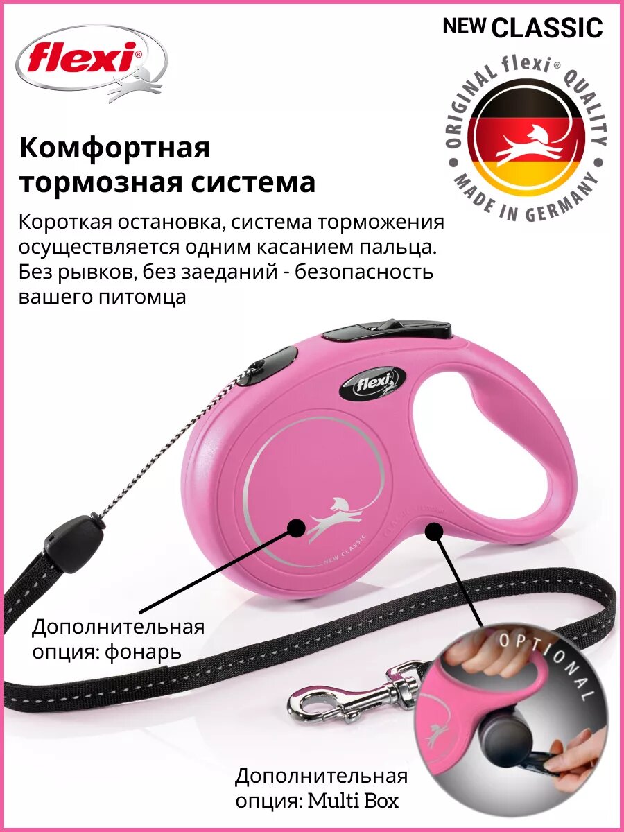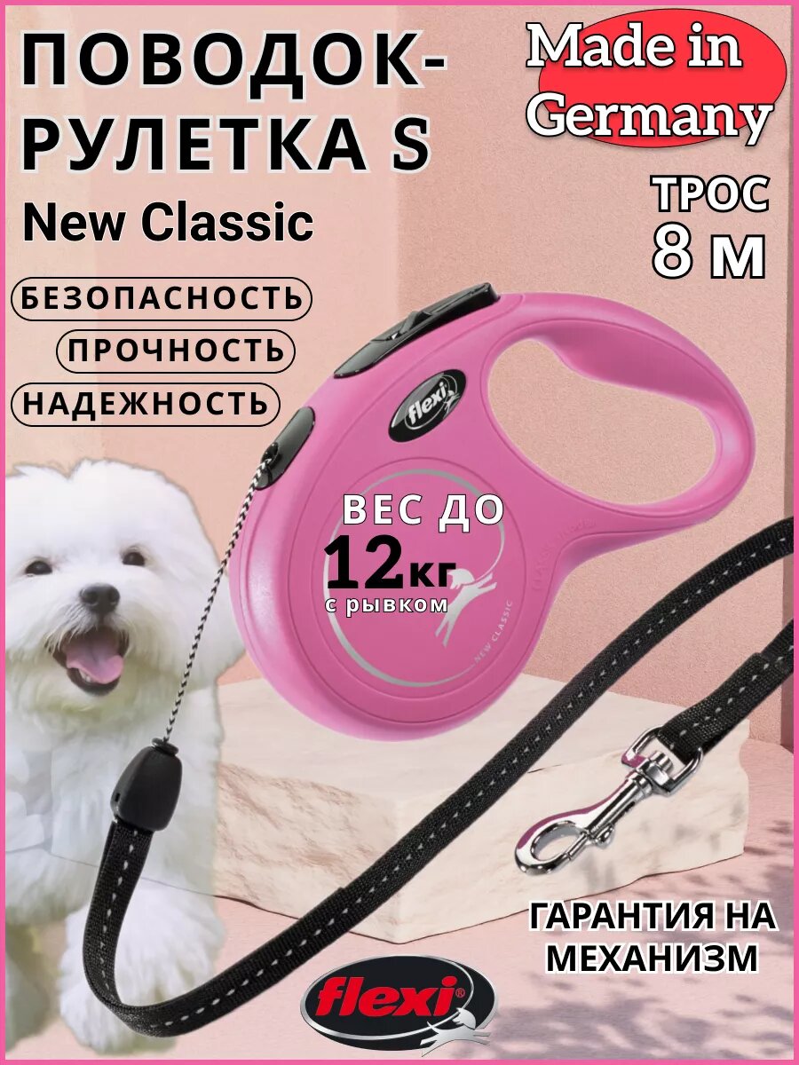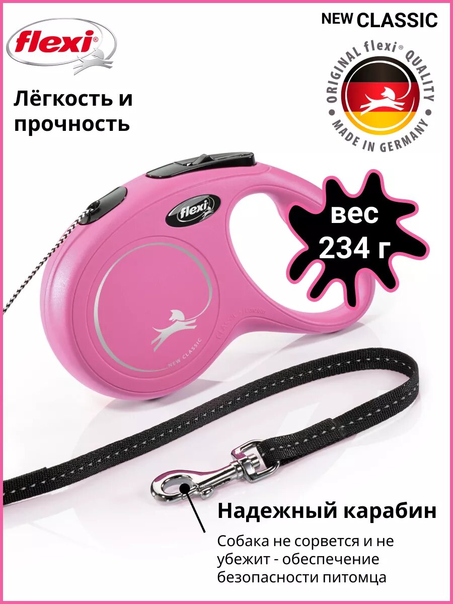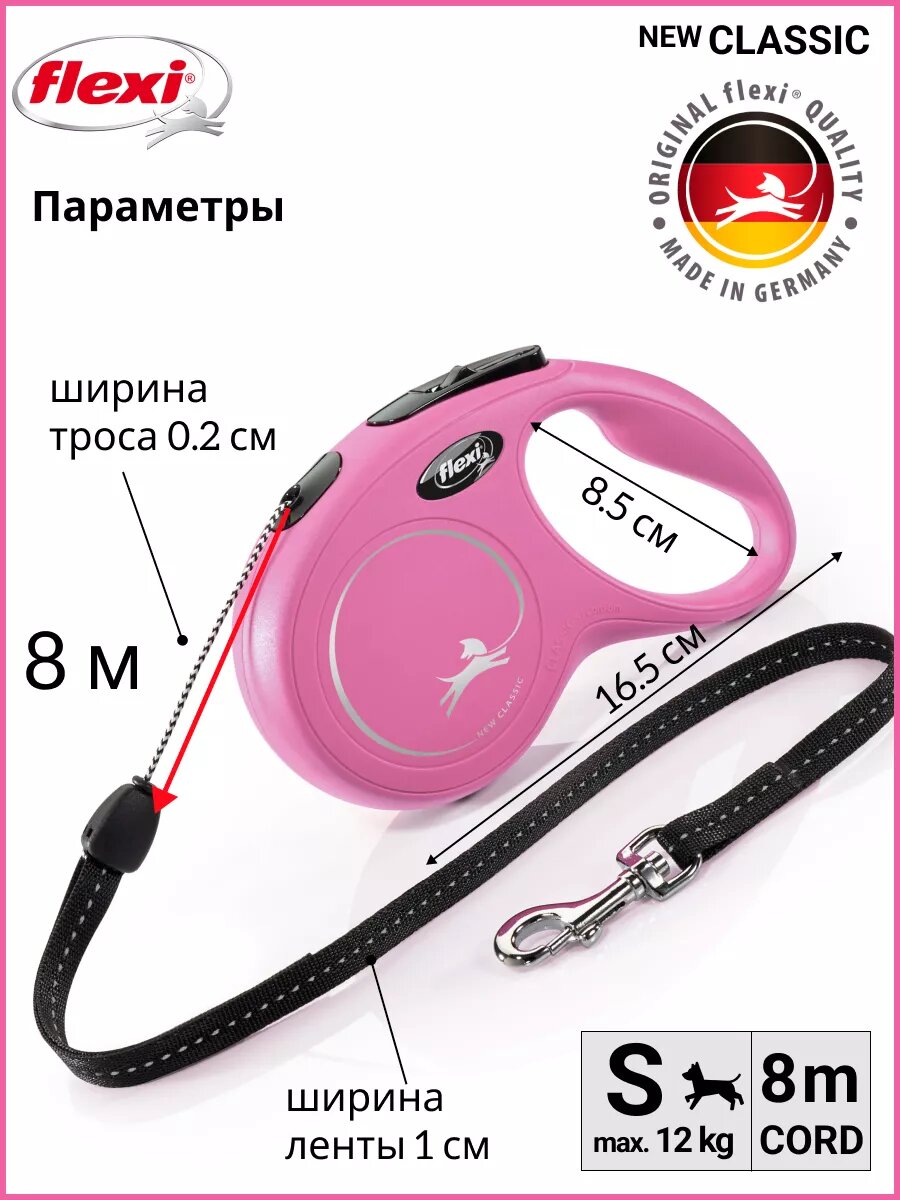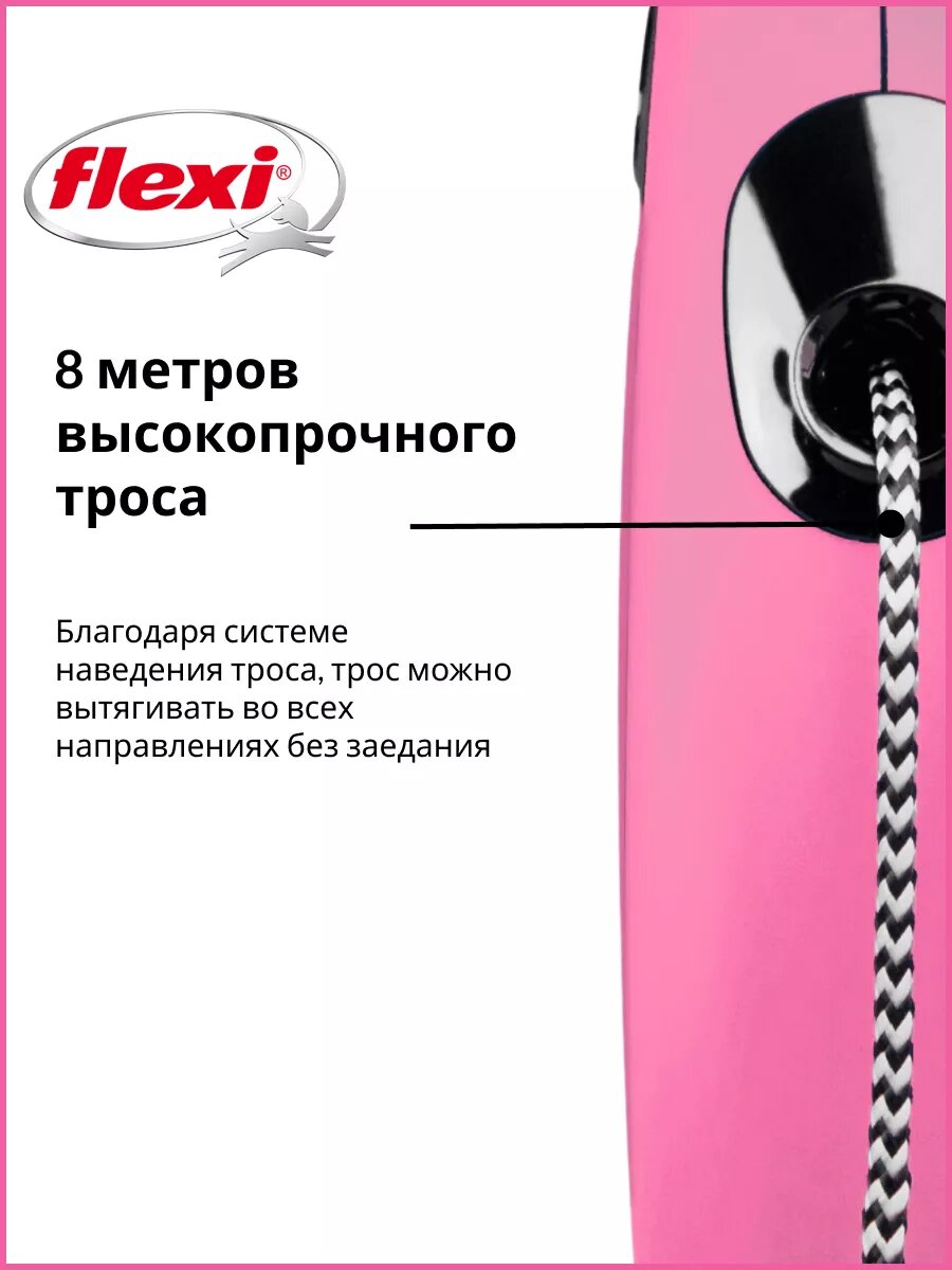 СохранитьFLEXI NEW CLASSIC CORD – Флекси тросовый поводок-рулетка для животных, 8 м, размер S, розовый (1 шт) интересное: