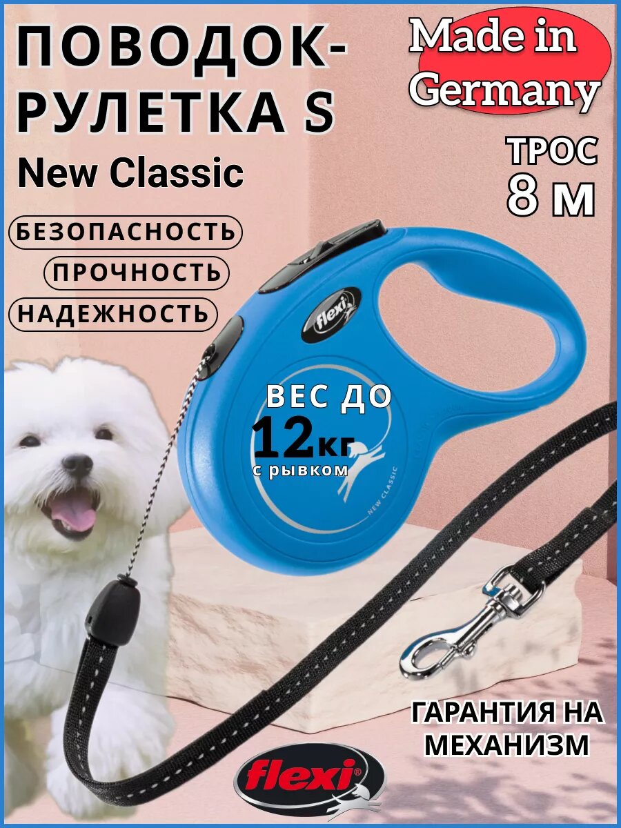Поводок-рулетка для собак Flexi New Classic (S) 8 м./до 12 кг. (синяя, трос)