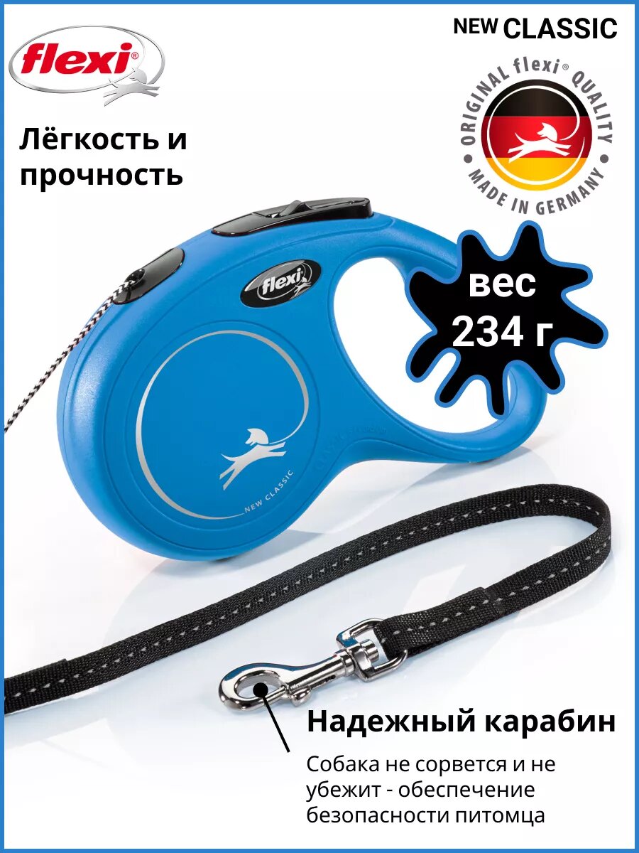 Flexi Поводок-рулетка New Classic S 5 м до 12 кг, синяя