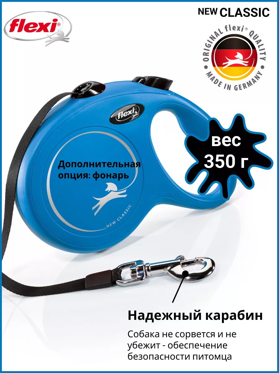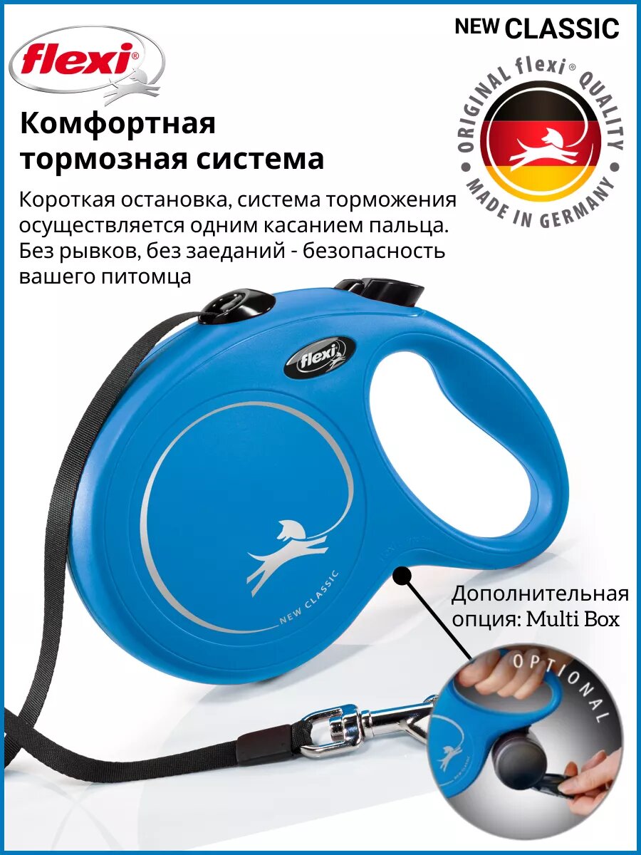 Купить Поводок - рулетка для собак Flexi New Classic L, лента 5м, до 50 кг, синяя