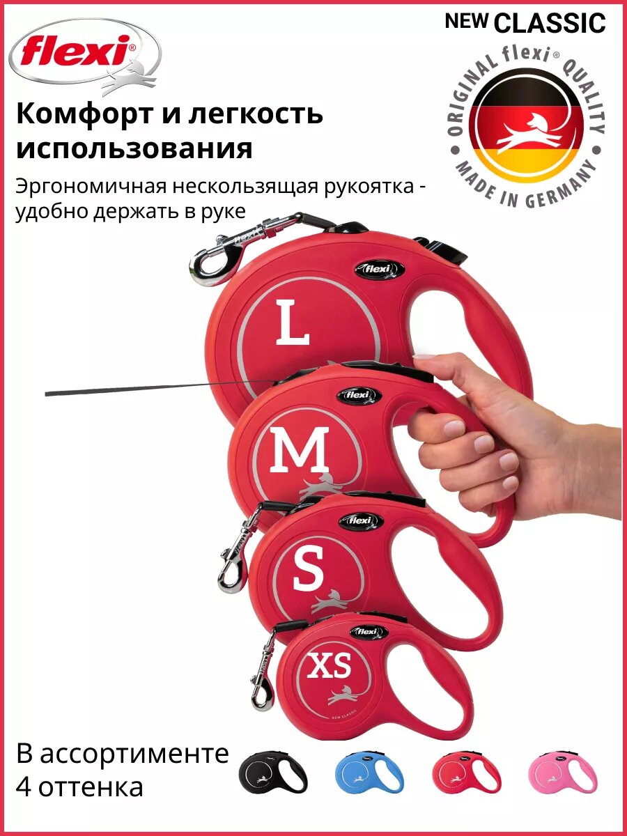 СохранитьПоводок - рулетка для собак Flexi New Classic S, лента 5м, до 15кг, красная интересное: