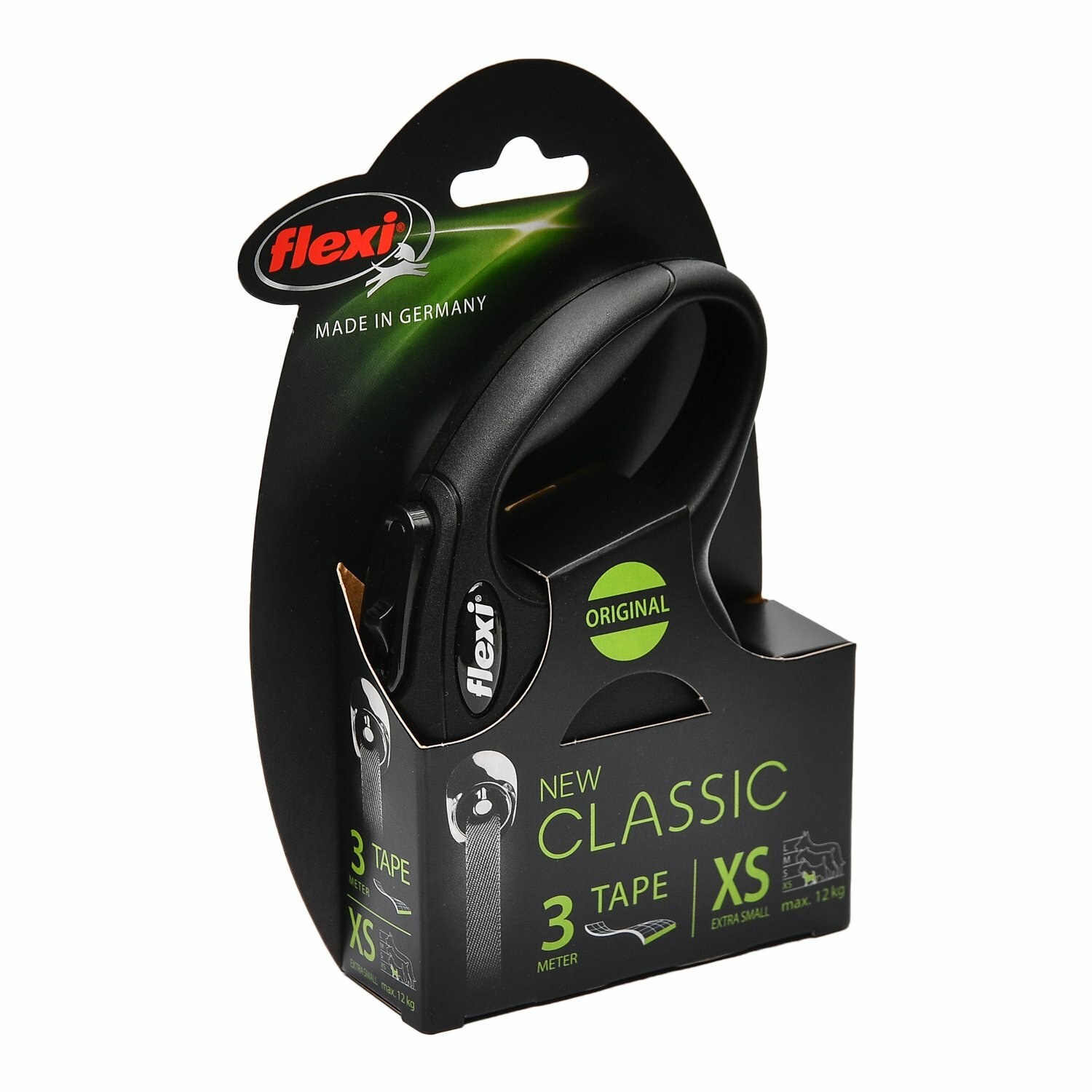 Поводок - рулетка для собак, кошек и других животных Flexi New Classic XS, лента, 3м, до 12 кг, черная
