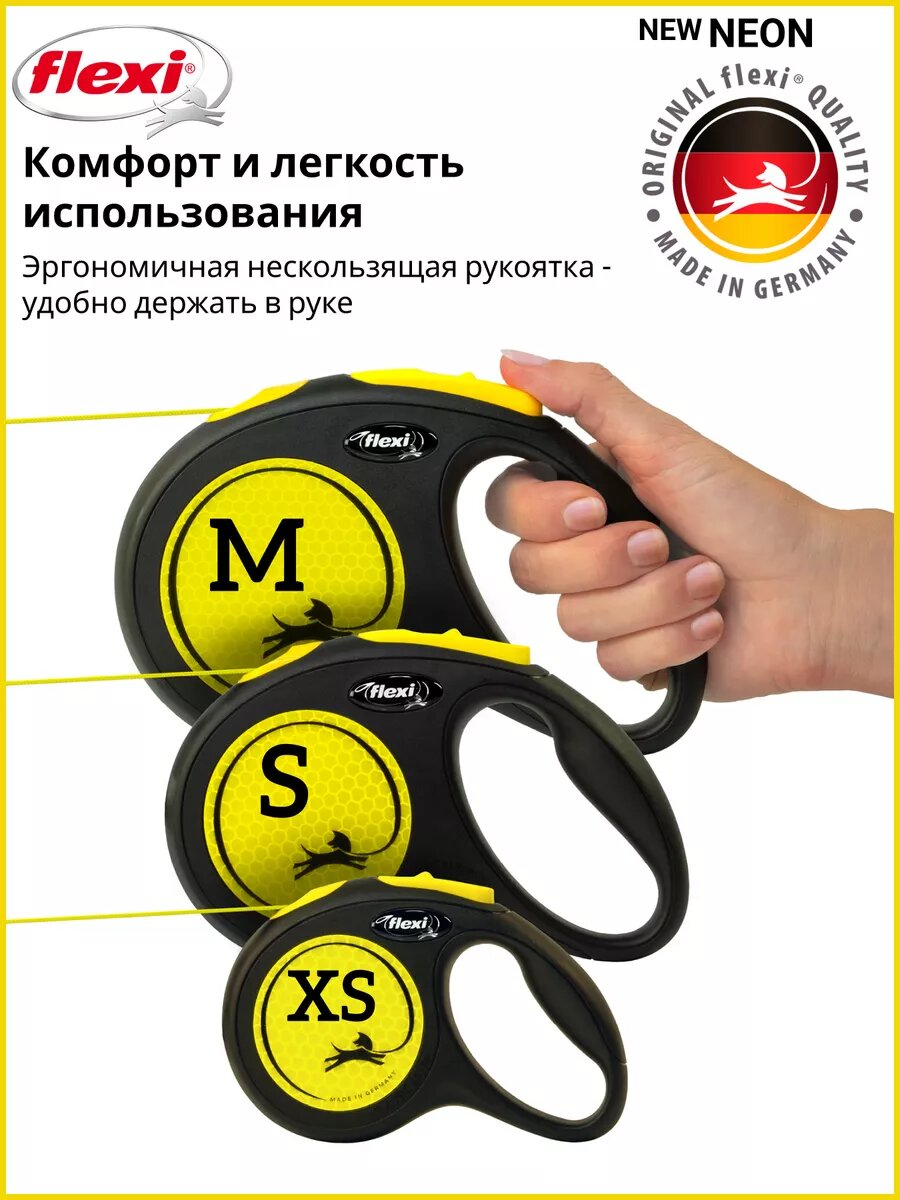Поводок-рулетка для собак Flexi Neon Safety Plus M